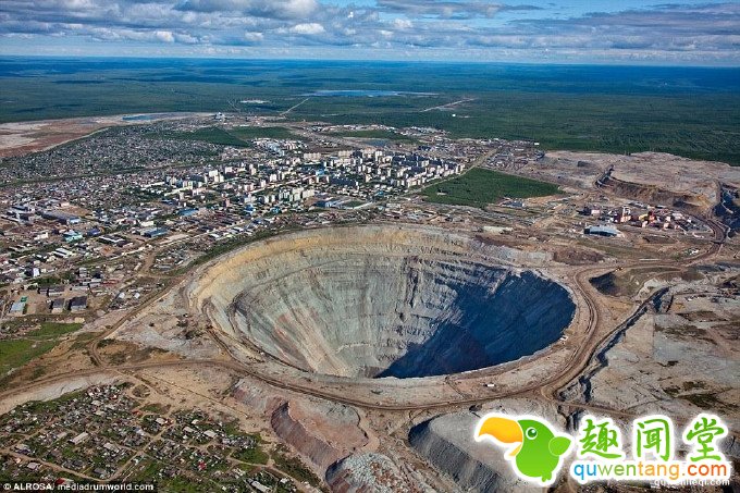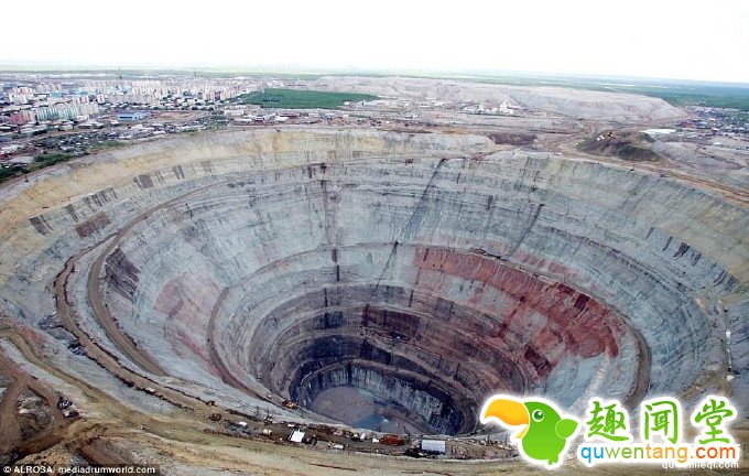 这个巨大的钻石矿有524米深,直径约为1609米,火山口一样的形状使它看上去仿佛被陨石砸中一般。