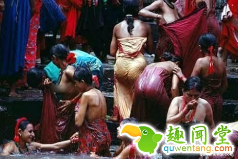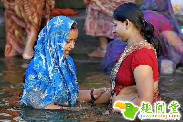 印度女人当中洗澡也毫不避忌,男女在一起好像没有分性别一样