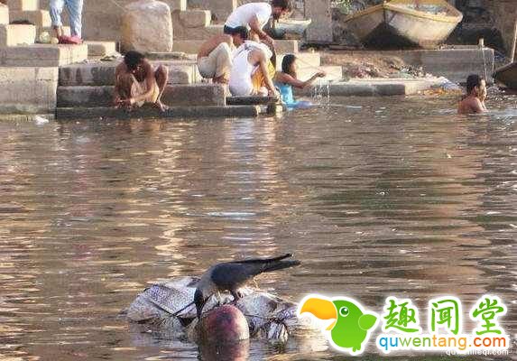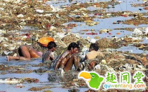 这里已经垃圾成堆了,可印度人照样洗澡玩耍