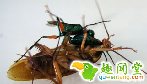 寄生蜂,蟑螂被寄生蜂金小蜂毒刺刺中后,自己所有的自由意志都丧失殆尽,整日没头没脑地被金小蜂驱使,像拉雪撬的狗一样。金小蜂会将蟑螂驱使进自己的地下巢穴中,然后将卵产在蟑螂的腹部之中。当卵孵化时,它们就会从内到外开始以蟑螂的身体为食,此时蟑螂仍然是活的。