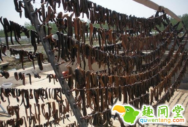 农民一般等到蚂蟥长大后,就开始准备用铁丝穿起晒干,等着厂商来收购。