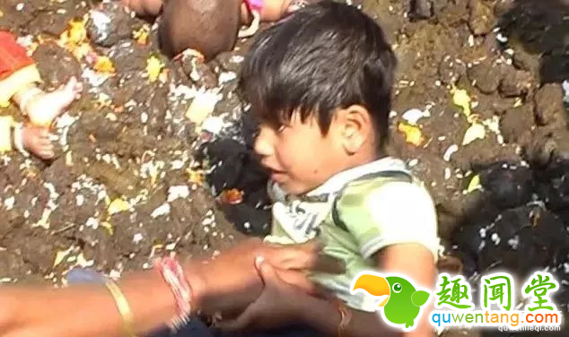 恶心风俗:印度村民用牛粪为孩子洗澡!