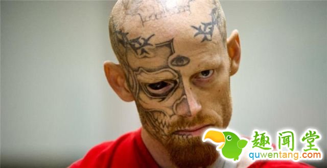 这名美国重刑犯由于袭警被判刑22年,他的脸颊布满刺青,甚至连眼白都被他刺成漆黑!