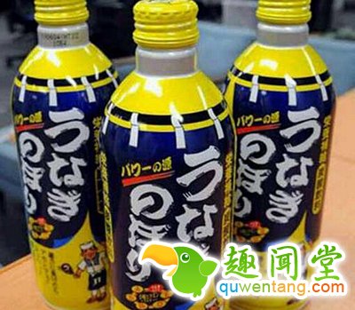 8【鳗鱼功能饮料】在日本,人们想提神时会喝鳗鱼汤、鳗鱼酒,或者鳗鱼功能饮料。这种黄色的“鳗鱼浪涌”饮料中含有鳗鱼头骨部位的提取物,喝起来“鱼味”十足。