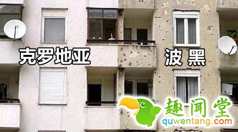 克罗地亚和波黑的国界线,想想住在同一栋楼里,却是两国人,总感觉怪怪的