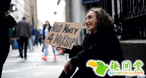 出人意料的是,在短短一小时内她的乞讨所得甚至是美国最低时薪的两倍之多,这些钱也足够让她买到一些较为廉价的化妆品。