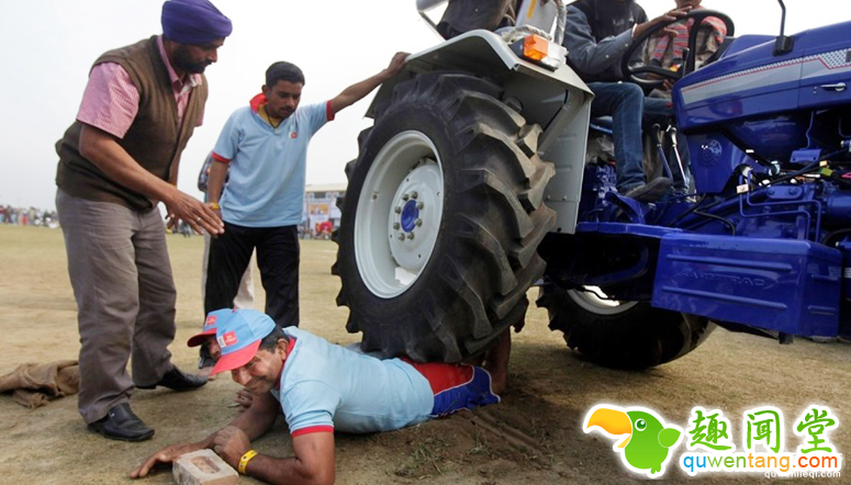 印度民族的开挂表现,举世闻名。尤其是他们的阅兵表演让人目惊口呆。其次,他们的火车超载也让人忍俊不禁。但,这些都已经过时了,印度人民在开挂的道路上已经前进了一大步。本图是一名18岁的男子用肩胛骨拖起了重达1050公斤的汽车。