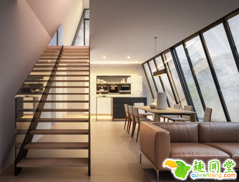 这个怪诞诱人的设计方案来源于Matthias所在的建筑公司「Lichtecht」的内部项目。房屋外观呈现三角形,四周使用大面积玻璃当作围墙,在悬崖边不用担心隐私问题,又有充足的光线射入。也许我们永远也不会住进这种奇特的房子,但不得不说,这样的设计真的非常吸引人。
