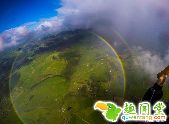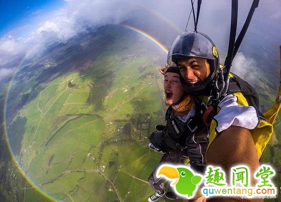 小哥跳伞幸运拍到圆形彩虹,会收获双倍幸福嘛?