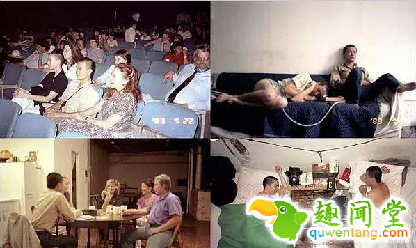 一根长约2.43米的绳子,绳子的两端分别绑在两个艺术家的腰间,他们就这样一起生活了一年时间。两人的吃、喝、拉、撒、睡都必须共同行动,但却不相互碰触。