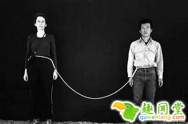 男女艺术家用一根绳子拴在一起一年,却互不碰触