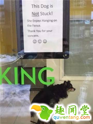 这只狗并没有卡住!它只是喜欢挂在护栏上,谢谢广大人民的关心。(微笑)