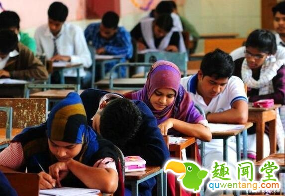 图为印度的中学生考试,看起来十分正规,不过要和下图连着看。