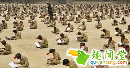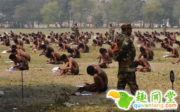 图为印度国防生考试,为了杜绝作弊,考生只能脱光衣服。