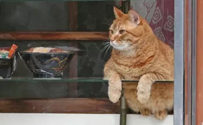 东京都荒川区区荞麦面屋「やぶ」的看店猫小粉,一般喜欢呆在炸猪排饭旁边