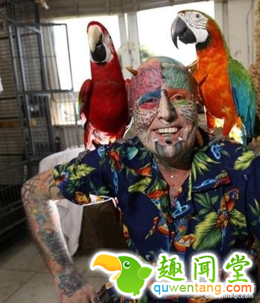 现如今,养宠物已经不再是什么新鲜事了。来自英国的男子Ted Richards也喜欢养鹦鹉,他对鹦鹉喜爱到着迷的程度,为了让自己变成鹦鹉人,Ted Richards不停的整容,结果把自己整容成了“丑八怪”。