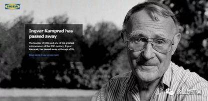 当地时间1月27日,宜家官网主页上发出讣告:“宜家创始人、20世纪最伟大的企业家之一英瓦尔?坎普拉德(Ingvar Kamprad),在亲友的陪伴下逝世于家中,死于疾病,享年91岁。”