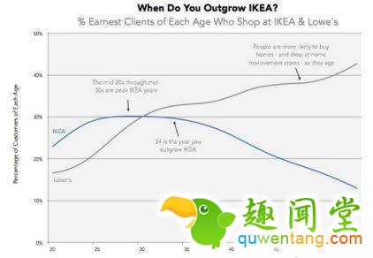 根据一项调查显示,美国宜家的客户年龄峰值是24岁——34岁。