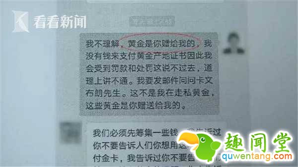 这位“外籍士兵”对王女士的爱可是如滔滔江水一发不可收拾,才聊了没多久就要送她一份厚礼,他告诉王女士要送给她很多黄金。
