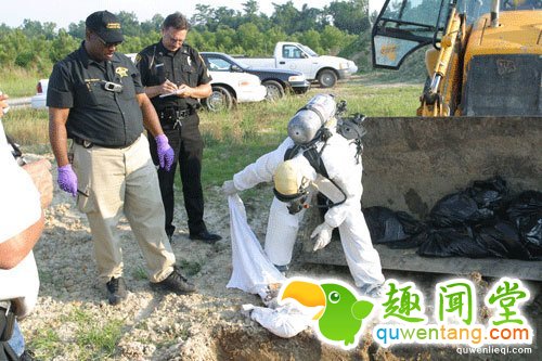 被发现的掩埋的动物尸体