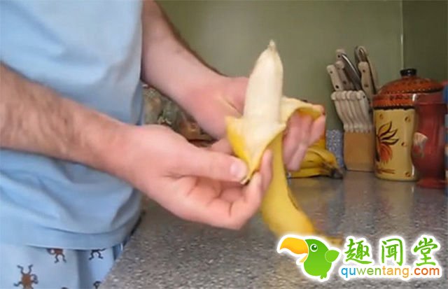 3. 剥香蕉应该从上到下,而不是从有柄的那头剥起。