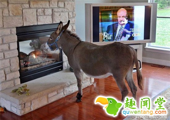 1. 这条名为Joplin的驴正在看它最喜爱的电视节目。