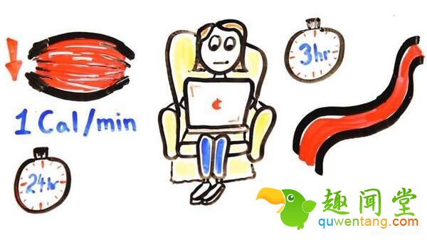 ▼只要坐1分钟,卡路里的消耗率立刻降低到每分钟1卡;只要坐3小时,动脉就会收缩导致血流量下降;而只要坐上24小时,就会增加患上糖尿病的机率。