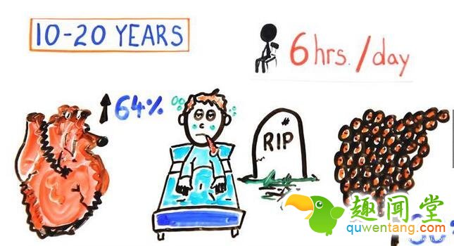 我们都知道久坐不好,但不知道原来长期来说竟然会有这么多后遗症。从现在开始就改善久坐的习惯吧,哪怕上班时间需要长时间久坐,也要定时起身走动。分享出去,让大家看看!