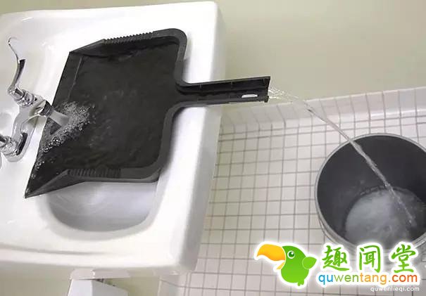 利用簸箕,可以给任何放不进水槽的容器装水。