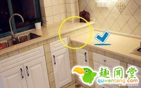 ▼1.有条件的话,橱柜一定要做这种错开高度的。洗菜区稍微高一些,用不著过度弯腰;炒菜的地方矮一些,用不著架著手臂炒菜。
