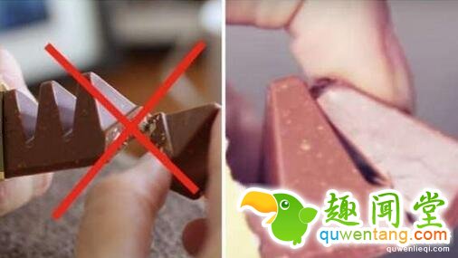 ▼三角形的巧克力不是向外掰断,而是向内。
