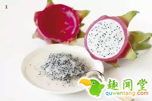 1.将火龙果切成两半,用不锈钢汤匙轻轻将果肉刮入容器中。