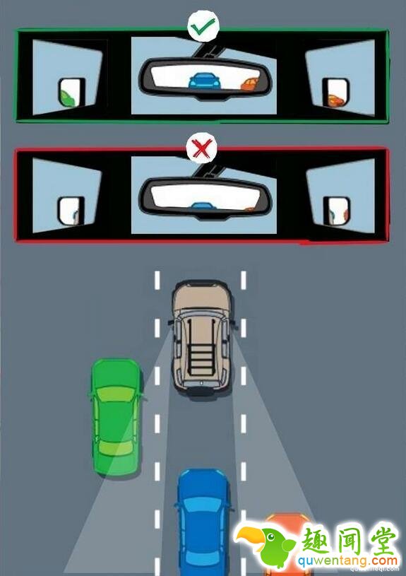 ▼正确调整车子后视镜:坐在驾驶座上调整左右两侧的车镜时,让它们恰好看不到自己的车子。这样可以最大可能消除视觉盲点,想要看后面车子的话,从中央的后视镜看就可以了。