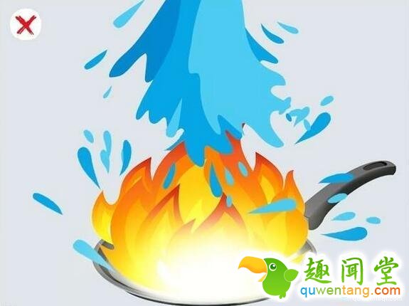 ▼做料理时起火,不要忙著浇水,快点关闭瓦斯炉,盖上锅盖就能熄火。这时候起火的往往是油,锅底的温度会让水瞬间蒸发,浇水的话火会烧得更旺。