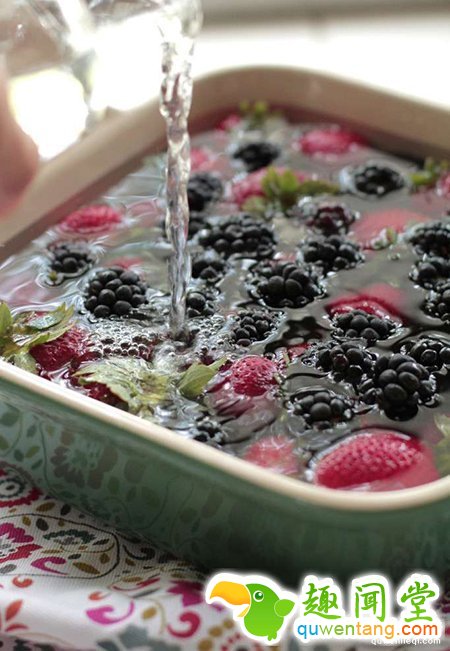 色泽艳丽的浆果是许多人最爱的夏日水果,不过这些美美的小玩意儿很容易发霉??梢杂么姿?比例1:10)清洗浆果,这样就不容易霉变了。