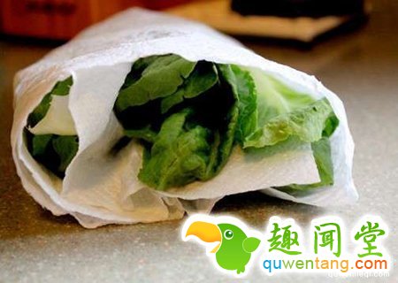 用厨房纸巾把没有洗过的青菜包裹起来,这样可以有效防止水分蒸发,就可以保存较长时间。