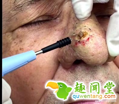 这位病人其实是得了红斑痤疮,俗称酒糟鼻,这种慢性炎癥会导致血管充血、丘疹,甚至引发大面积类似粉刺的疙瘩。他会导致血管充血、丘疹,有时还会引发类似粉刺的疙瘩在脸部大规模爆发。红斑痤疮通常长在两颊和鼻子等部位,但有时也会长在额头和下巴处。然而,遗憾的是到目前为止人类仍未了解红斑痤疮的病理,研究者也无法挖掘出导致红斑痤疮的真正病因。(挤大批黑头没想到是长这样的,有够惊悚的啦!)