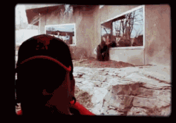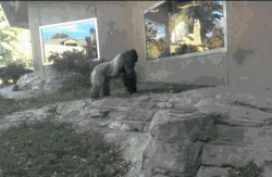 这发生在美国的一个动物园…. 片里面的这个,是一只园里很著名的银背大猩猩Kijito,它试图从背后袭击这个哥们… 但是被厚厚的玻璃墙挡掉… 这样的场面,一下就在网上火了起来……