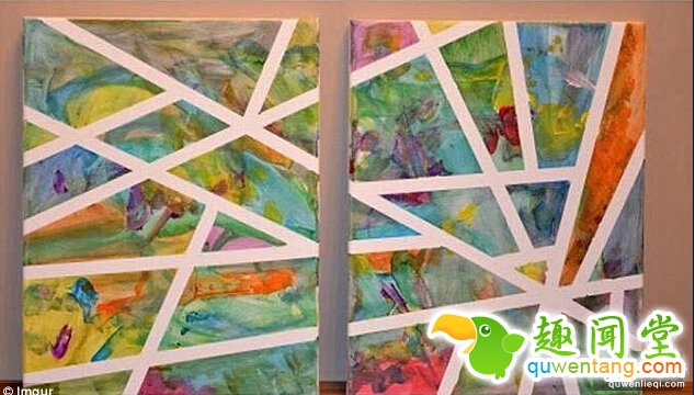 与其花一笔买艺术品,不如用粘胶带在空白画布上形成一个漂亮的图案,然后让你的孩子给你画一幅你可以挂在墙上的杰作。