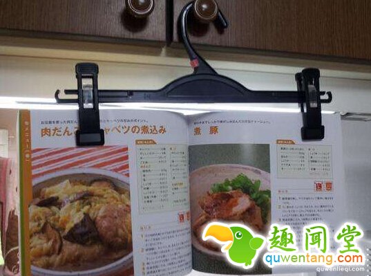 ▼5. 可以把衣架用来固定食谱,做菜时更方便。