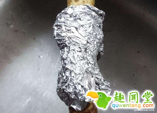 ▼8. 用铝箔纸快速去除牛蒡皮。