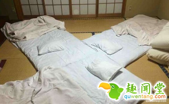 ▼9. 三人去旅行的时候可以把床铺铺成这样,晚上聊天更方便。