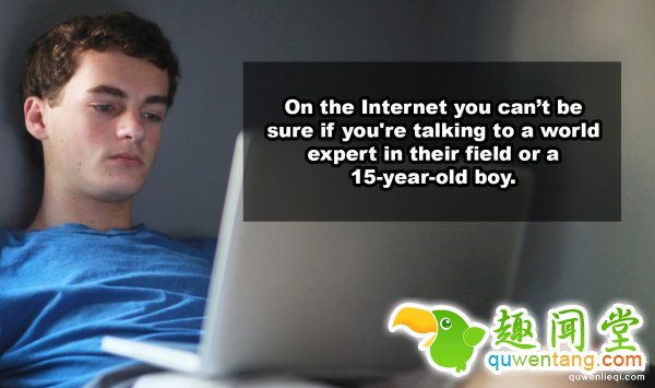 11. 在网路上,你永远不知道正在跟你聊天的是不是领域内的专家,或者只是个15岁的小鬼。