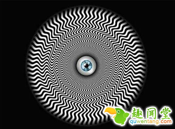 ▼首先,大家专注着盯着图中心的眼球,再仔细看看在外围移动着扩散的光波是什么颜色。