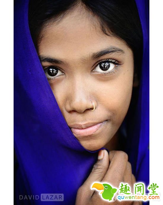 面部特写照片具有极大的冲击力,拍摄时可以利用一些外物帮助构图,如上图中少女的头巾。
