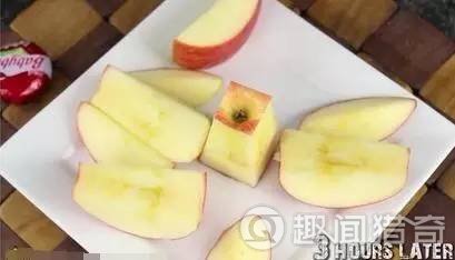 3个小时后。如果你要保存更长时间,比如你想带去办公室吃,可以在家切好后,在苹果肉上喷一些柠檬汁,再用皮筋将苹果固定好。这样保存八个小时后,苹果看起来非常新鲜,完全没有变黑。