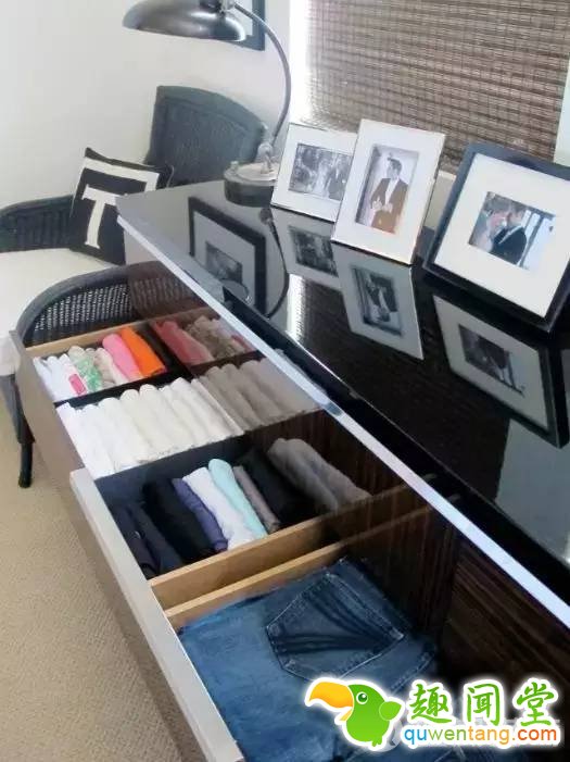 3.把折叠好的衣物竖着放置在抽屉里,方便找款式,就算很赶时间也可以一打开抽屉就能找到自己到的款式。