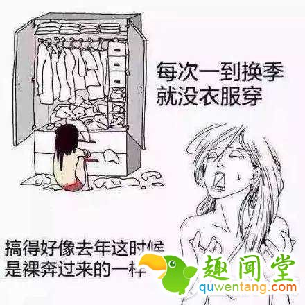 所以一个女人要同时面临的两个问题:1.没衣服穿了。2.衣服多得没地方放了!