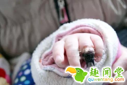 等发现就医时,孩子的指端已经变黑,因缺血导致坏死。