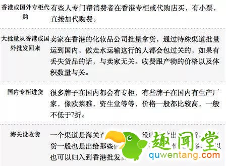 在购物网随便搜索一个进口化妆品,你会发现大量价格比专柜低了二三折的便宜货。卖家们对价格低有着多种解释:内部价,偷税价,台湾版,尾单,内部样品,小样,替换装等等,这些化妆品真的从这些渠道来的吗?撇开假货,渠道就是影响正品价格的一个重要因素,而正宗化妆品的进货渠道主要有以下几个: